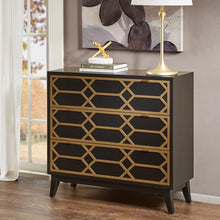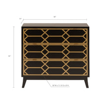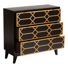 Update your home decor with the eclectic style of the Madison Park Maria Accent Chest. A gold lattice work adorns the front of the chest, providing extra dimension and an elegant contrast. The 3 large drawers create a generous storage space for your belongings. Unique in design, this accent chest adds luxurious style and functionality to home decor. No assembly required.