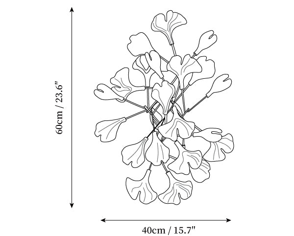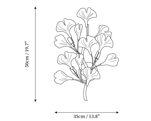 This particular ginkgo leaf-shaped wall lamp is an absolute eye-catcher in your interior! The wall lamp is made of a shiny gold+white finish that radiates warmth and elegance. Mid Century Sconce is strikingly distributed throughout the wall. Even when turned off, this sculptural lamp is a gorgeous piece of jewelry on the wall. It's a striking alternative to a painting, tapestry, or mirror.