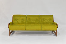 Wrapped in luxurious green microfiber, this Model 501 Sofa is an exquisite piece that embodies refined comfort. The hardwood arms, delicately stained with Walnut, exude a timeless allure. Indulge in ultimate relaxation with button-tufted cushions crafted from multilayer foam.