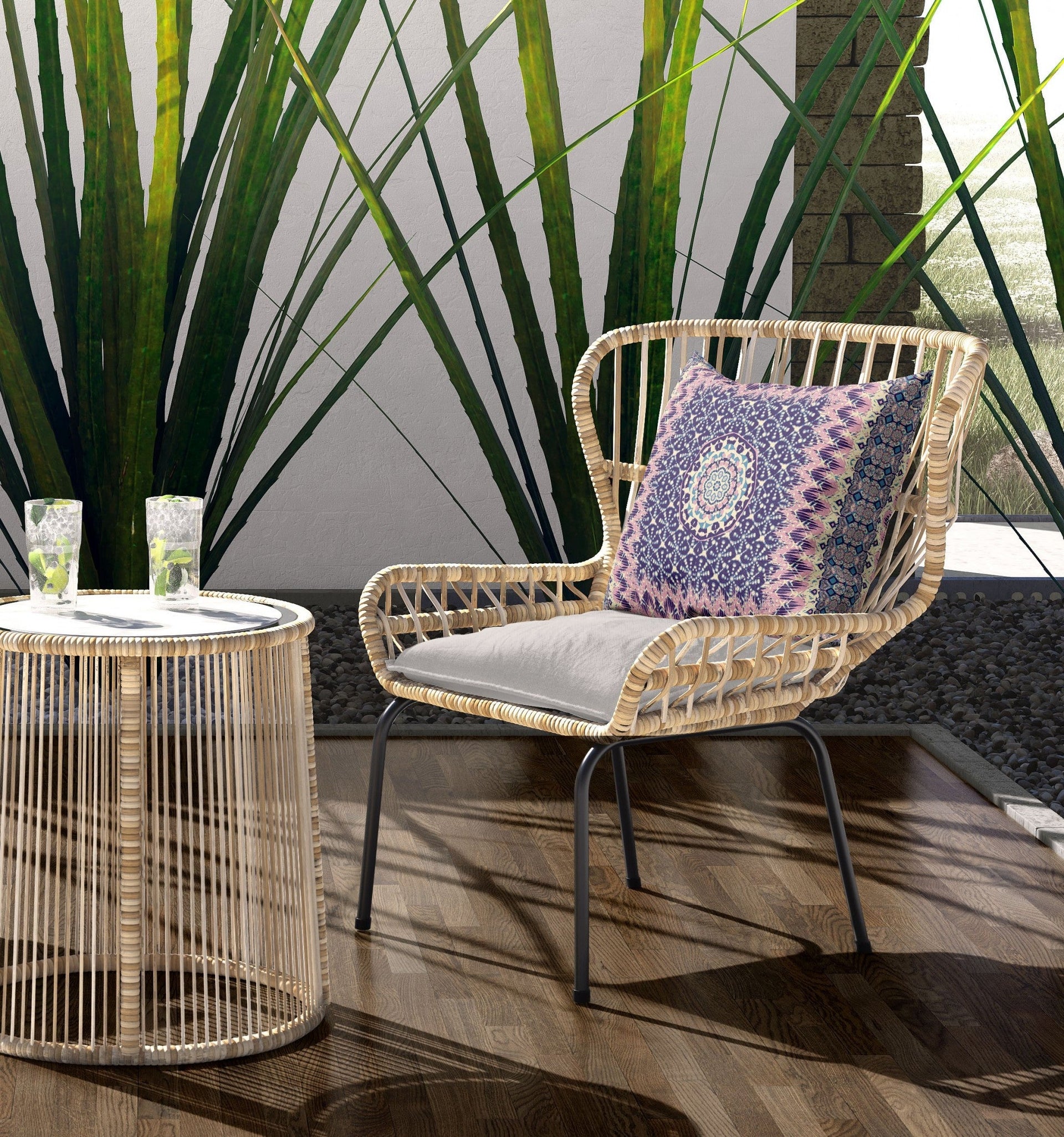 This Pink Indigo Holy Floral Indoor Outdoor Throw Pillow will brighten up your living room with a classic bohemian charm. Pulsating with lovely shades of pink, cream, and indigo, this pillow showcases intricate geometric patterns with floral detailing that makes this pillow a stunning décor to update your boho-chic interior. The pillow has the softest touch and enhanced durability because of its premium broadcloth fabric, making it a perfect accent for indoor and outdoor use. The high-quality polyfill insert makes the pillow super soft and cozy with fluffy nature to maximize comfort. If you want a luxurious and classy piece of décor in your home, this decorative throw pillow is sure to draw your attention. 18” x 18” x 5”