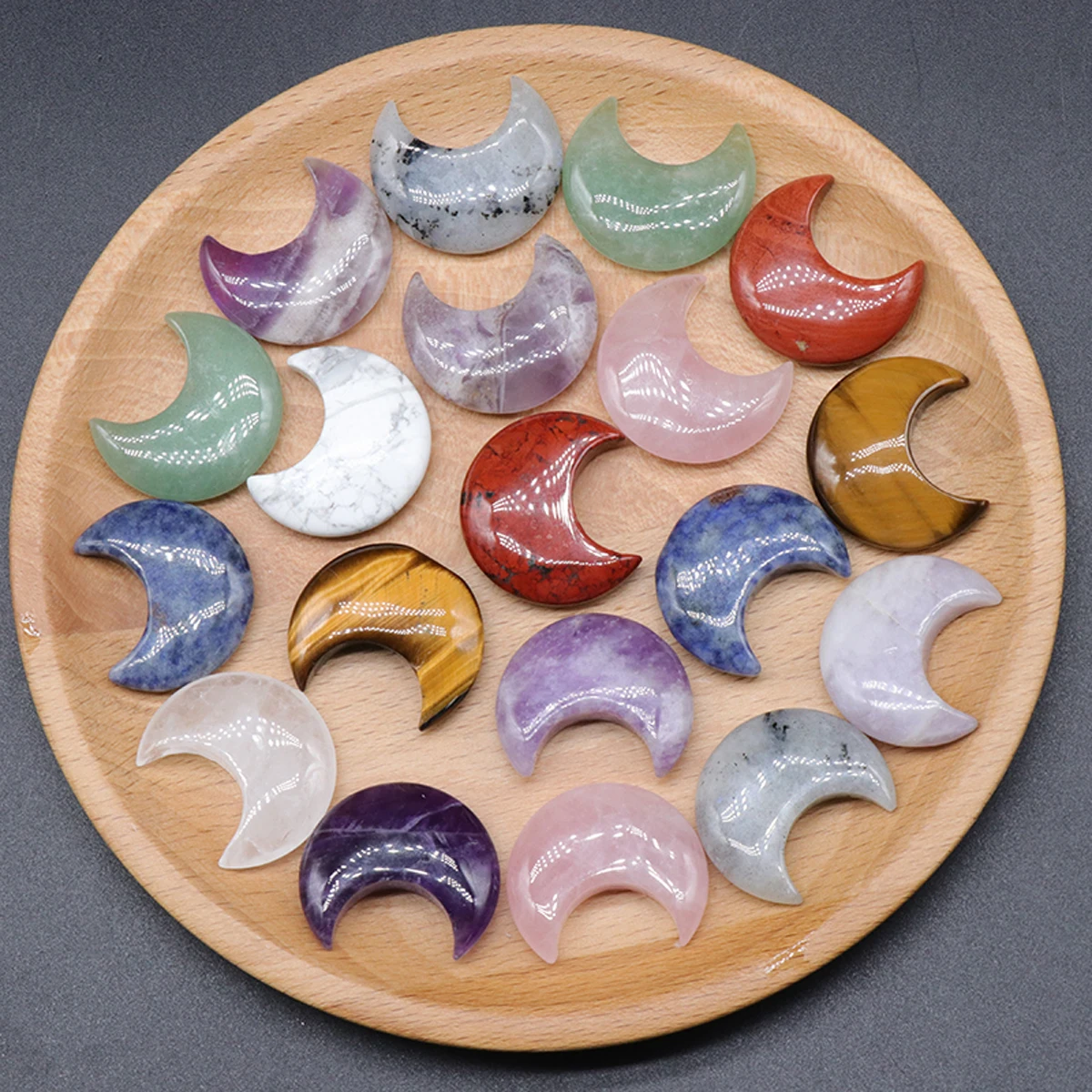 1pc Natural Stone Rose Quartz Amethyst Moon Carving Aura Healing Mineral Gem Home Decoration Ornament Gift