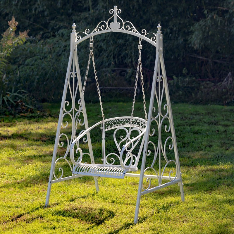 Provide your guests with a comfortable and stylish place to not only sit, but swing with the "Bordeaux" Swing Chair. Made of high quality iron, this swing is built to last. Its unique design, flowing architecture, and mesh roof brings an air of style to any atmosphere.