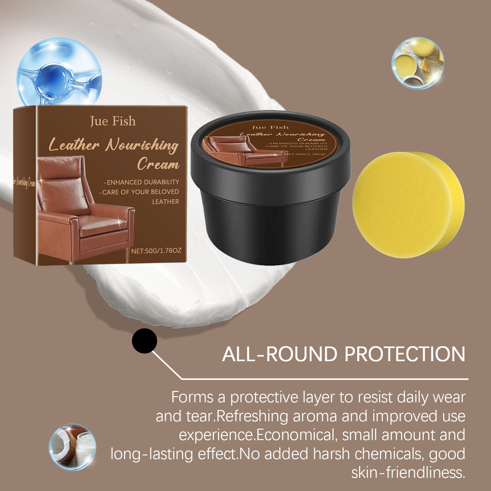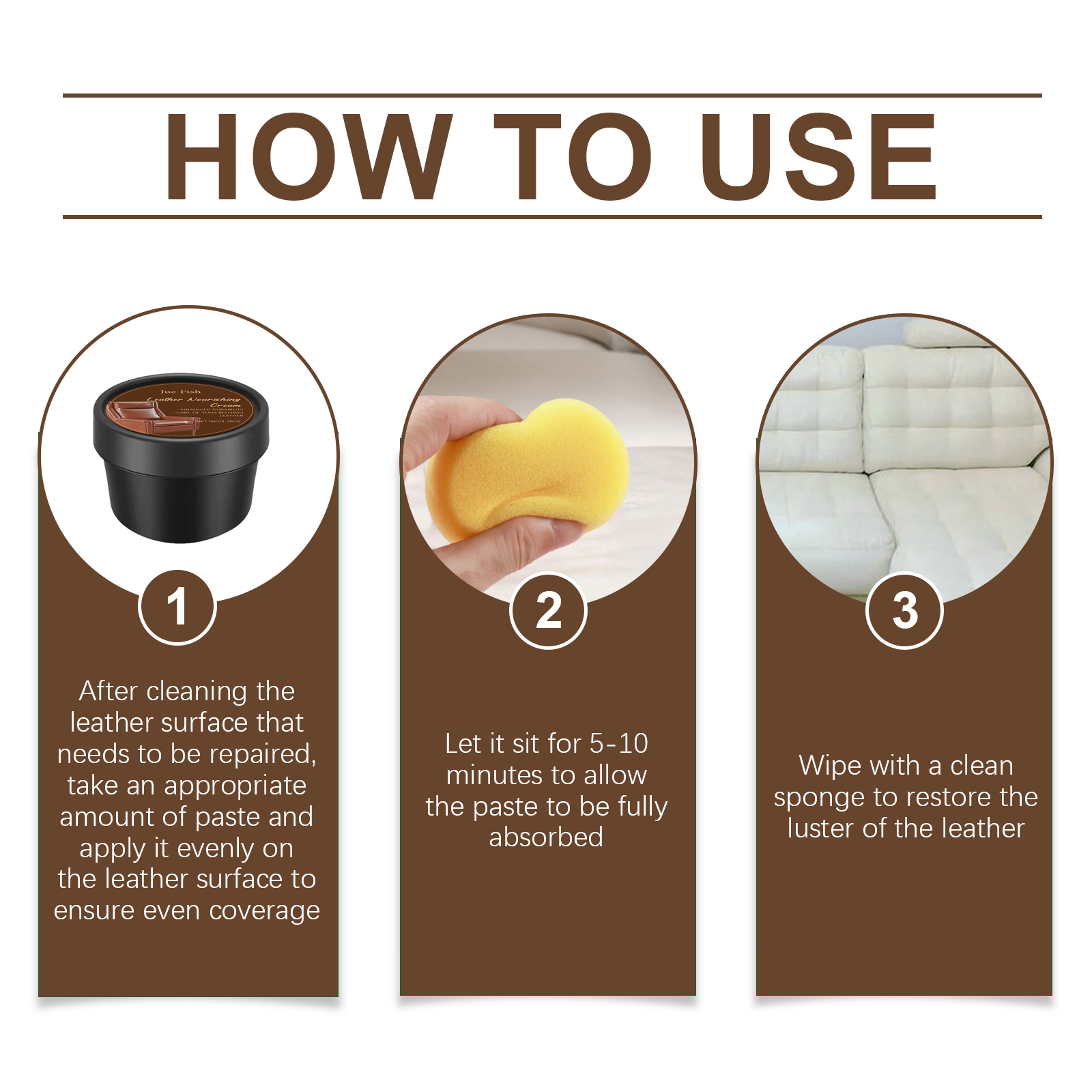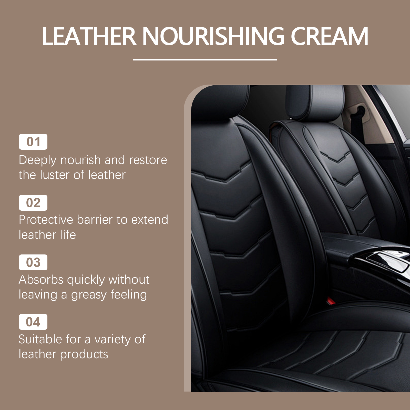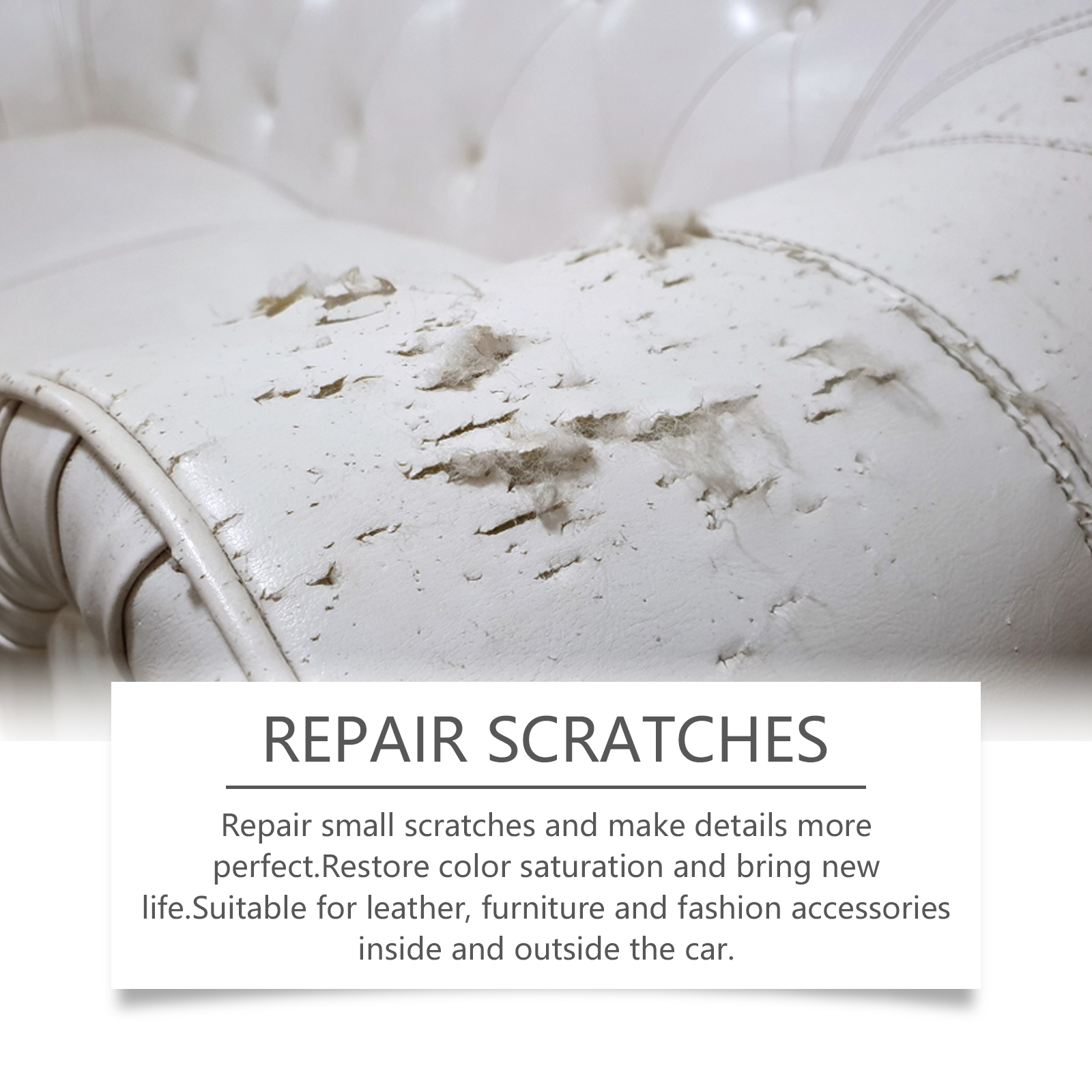 Our leather scratch repair cream contains flaxseed oil, cocamidopropyl betaine. It can repair small scratches and make details perfect. Restoring color saturation brings new life. Suitable for leather, furniture, fashion accessories car inside and outside. Its use method is very simple: after cleaning the leather surface that needs to be repaired, take an appropriate amount of paste and evenly apply it to the leather surface to ensure uniform coverage; Let it sit for 5-10 minutes for the paste to fully absorb; Use a clean sponge to restore the luster of the leather. And can improve the softness, improve the touch. Waterproof layer to effectively isolate stains.