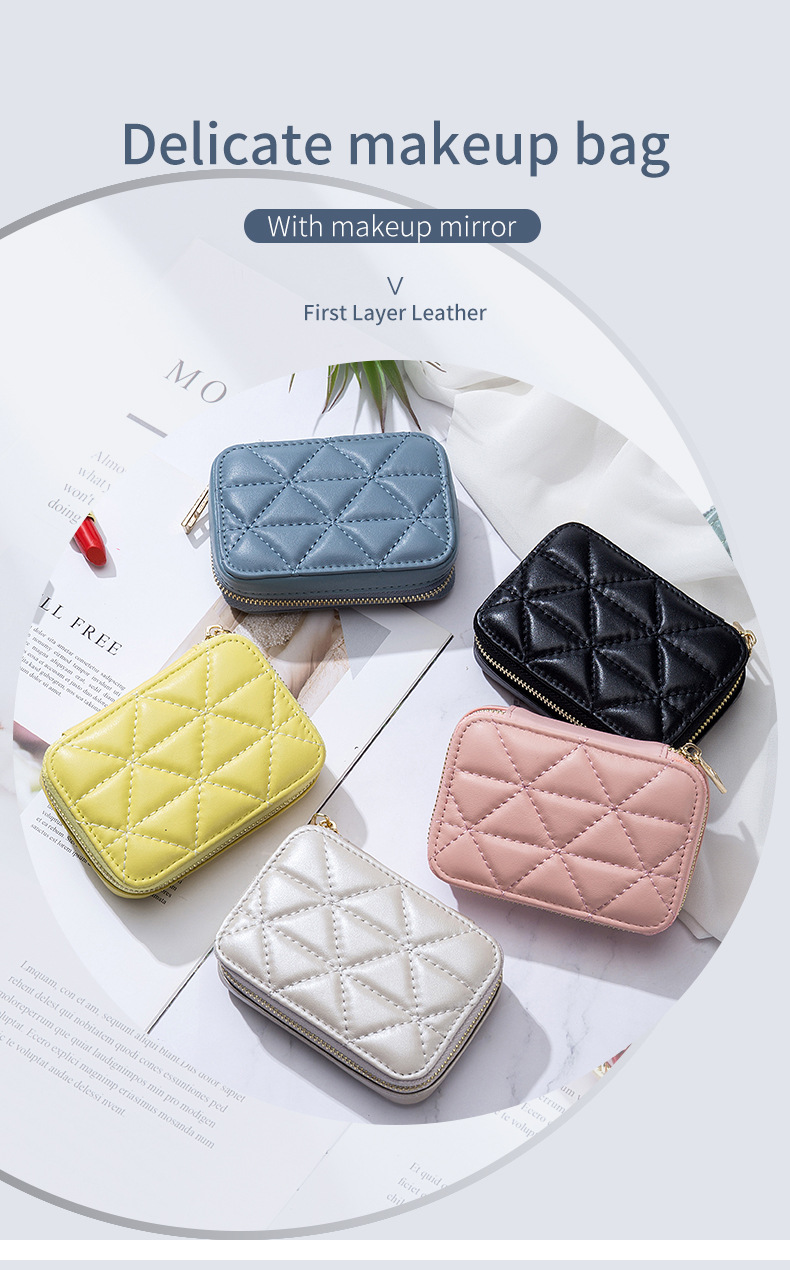 Portable Lipstick Case with Mirror Brand Design Genuine Leather Cosmetic Bag Pouch Ladies Cosmetics Organizer Pouch Box Wallet