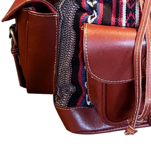 Southwest Design Leather & Woven Fabric Backpack Purse