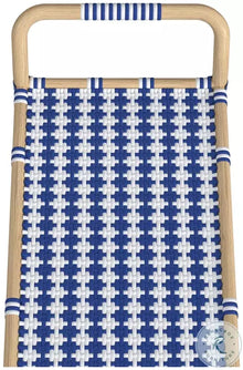 The Ventana Bar Cart has coastal styling with bistro inspiration. Features a top and bottom shelf for storage, and and casters on the legs for function. Finished in tan, blue and white rattan.