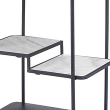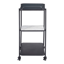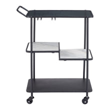 25" Black Steel and Faux Marble Glass Rolling Bar Cart