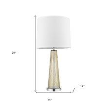 Add a bright anchor to your room with this 29-inch champagne glass buffet lamp with off white empire shade. A gorgeous champagne glass base brings just the right amount of pizzazz to this fabulous lamp. The off white empire fabric shade is finishes this piece off nicely and symmetrically this candlestick style buffet table lamp offers a slender profile and will throw just the right amount of light. The light that this lamp throws is soft and warm to elevate the look of most any space in your home. The perfect lamp to create just the right natural and soothing light in your space. 29-inch H x 14-inch W x 14-inch D