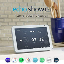Echo Show 8 connects to Alexa to give you rich stereo sound with vivid visuals on an 8” HD screen. See on-screen lyrics with Amazon Music. Set alarms and timers. Display your favorite photos. Check weather and traffic as you head out. Catch up on news highlights and movie trailers.