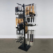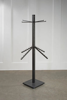 Perfect for purses, clothing, scarves, gloves, jewelry, towels + more! Features 40 slots; 10 on 4 sides of the display bar. Totally adjustable arms. Arms can be inserted in variable slots for different hanging heights. Great for closets, small spaces, laundry rooms and stores. Ability to adjust arms along the pole allows for hanging items with different or same lengths. Includes 12, 15" long arms. Holds up to 40 lbs. per arm. Use with additional hooks that can go onto arms, item #21624. Additional straight arms also available in packs of 4, #20582. Waterfall rack arms available in packs of 4, item #22518.