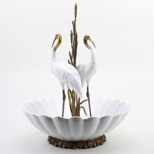 22"H Porcelain Double Cranes Basin with Bronze Ormolu - White