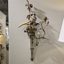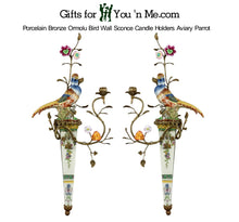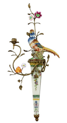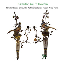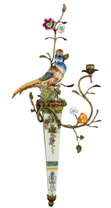 30"H Porcelain Bronze Ormolu Aviary Parrot Wall Sconce Candle Holders