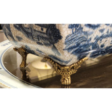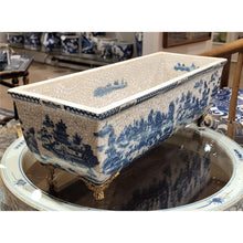 18"L Porcelain Rectangular Planter With Bronze Feet - Blue Willow