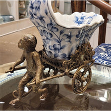 10"H Porcelain Ricksaw Monkey Bronze Pulling Cart Basin Planter Ormolu