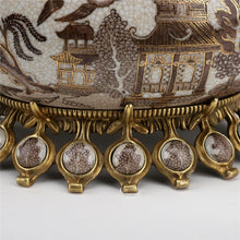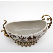 Village Pattern Boat Shaped Basin With Swan Figure