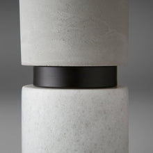 • Materials: Iron and Concrete with Off White Linen Shade
