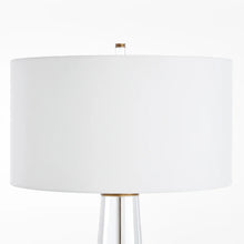The Bellamy table lamp captures attention with its solid, tapered crystal base, accented by layers of antique brass tooled rings, creating a mesmerizing visual display. A crystal body adds a touch of heritage and grandeur complemented by an antique brass base. The lamp's natural linen shade diffuses light that bathes its surroundings in a warm and welcoming glow. The lamp's dimmer on/off switch, conveniently located on the socket, allows lighting adjustment to suit your needs and mood. To ensure stability and a substantial presence, the Bellamy Table Lamp is anchored by a weight of 42 pounds.