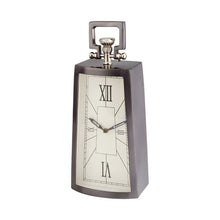 Adorn a desk with a touch of traditional charm with this intriguing table clock sculpture. In a stylish black nickel finish, the clock features a white finish with black hands and Roman numerals at the quarter hour marks.