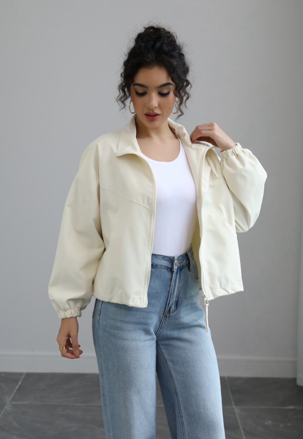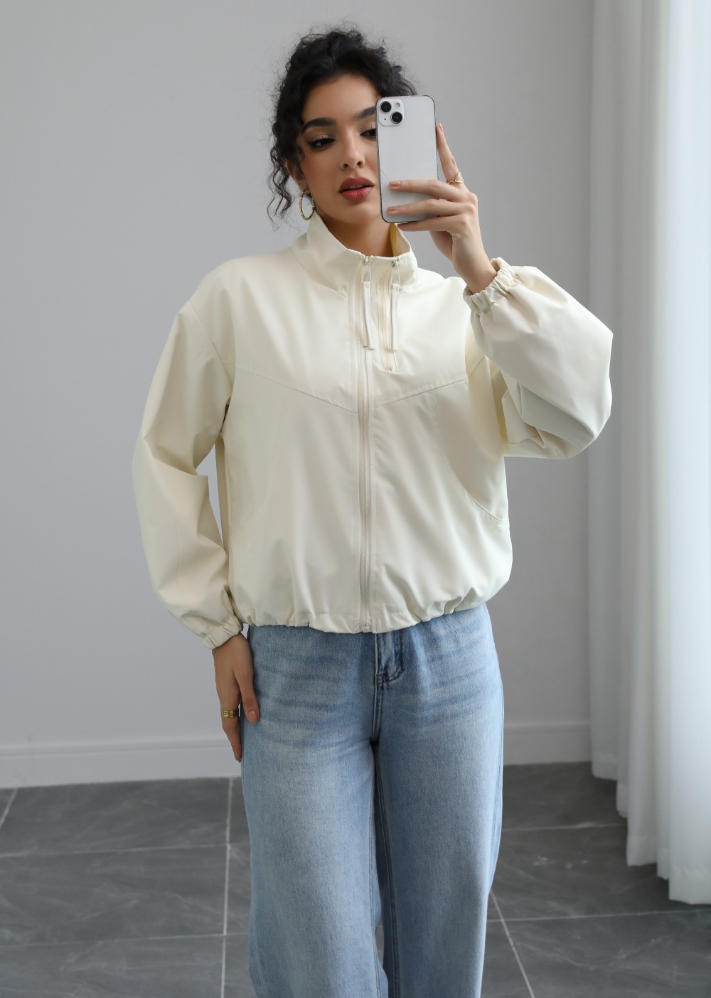 Fashionable Waterproof Short Jacket with Stand Collar for Women