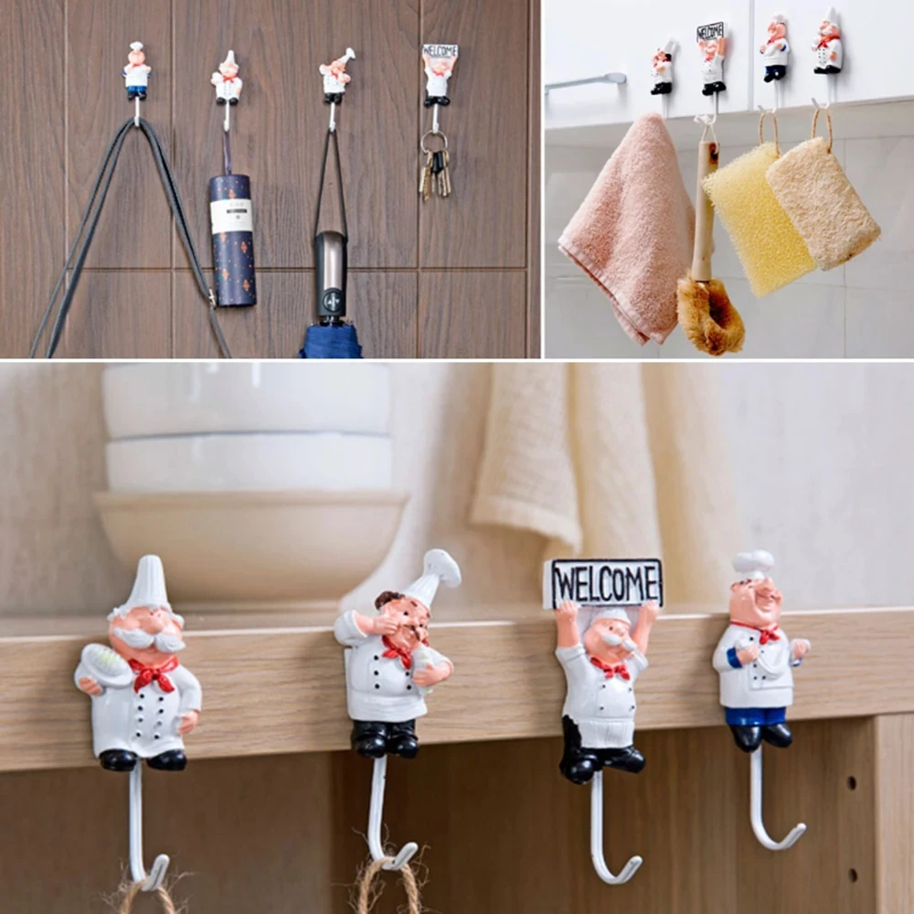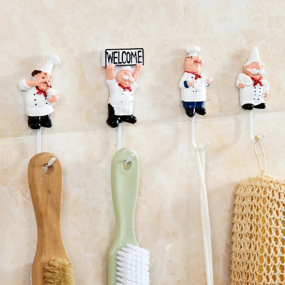 New Cartoon Chef Shaped Hook Powerful Adhesive Wall Key Holder Kitchen Bathroom Storage Door Clothes Coat Hat Hanger Towel Hooks