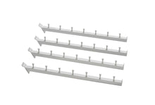 The waterfall arm fits onto the 4 Sided Display Rack #20581 or #21640 to create hanging space. It is perfect for hanging garments which are on hangers or other self hanging merchandise. It features 7 pegs, approximately 3/4" tall and spaced approximately 2.25" apart. Keeps merchandise neatly displayed and easy to see.
