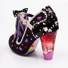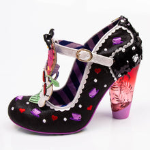 Tiffin has all the things... love hearts, teacups, a donut and a cupcake topped with cherries!! What more could a girl ask for?? Why, a divine moulded lucite heel, of course! These stunners are a lesson in over the top rockabilly eleganza. Heel height - 9.5cm