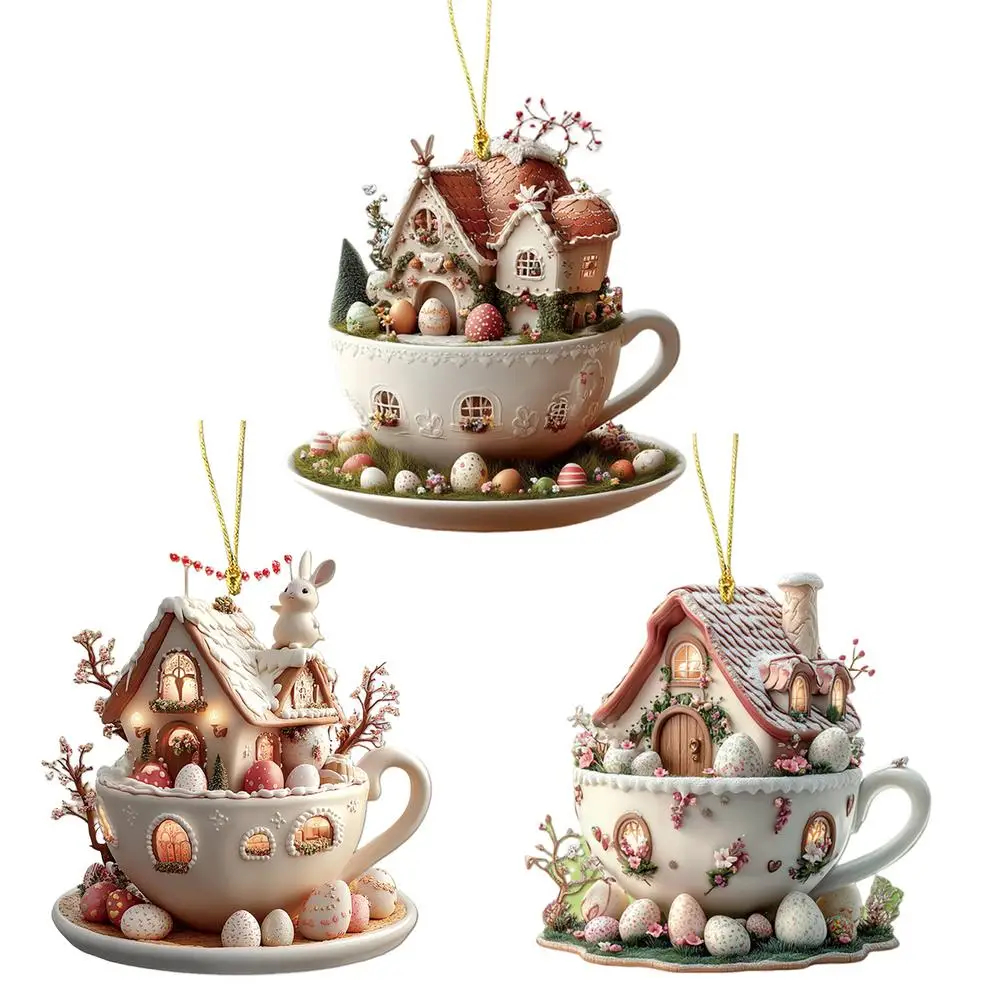 Christmas Coffee Cup Ornaments Coffee Mug Decorative Tree Hanging 2025 Xmas Navidad 2026 New Year Easter Bunny Party Supplies
