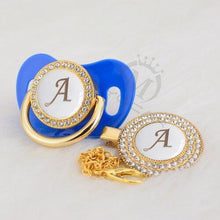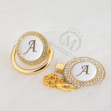 Luxury Modern Diamond Pacifier and Chain Gold Set With Initials Letter White Elegant A Beautiful Pacifier and Pacifier lip