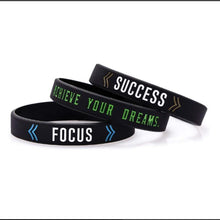 - CHALLENGE YOURSELF AND MOTIVATE THE WORLD - Slip on this inspiring collection of silicone wristbands, each with a motivational message to support you on your journey. Inspire yourself and others to create success, focus on goals and believe in dreams.