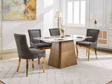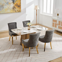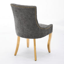 Chenille Dining Chairs Modern Style with Curved Gold-Plated Legs & Rivet Trim