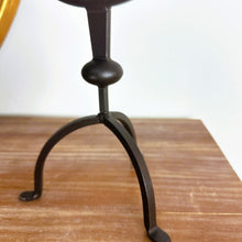 Vintage-inspired three-arm metal candelabra in a dark bronze-black finish, featuring graceful curved arms and classic drip plates. Elegant and timeless for mantel, console, or tabletop décor.