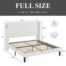 - Full size White Velvet Upholstered Platform Bed Frame with Wingback Headboard