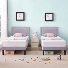 Set of 2 - Twin size Grey Upholstered Platform Bed Frame with Headboard