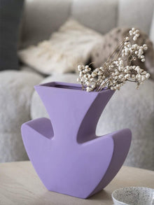 Handmade Memphis Funky Lavender Ceramic Vase, Decorative Flower Vessel
