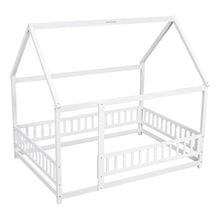 Product Name:Full Size Floor Wooden Bed with House Roof Frame, Fence Guardrails ,White