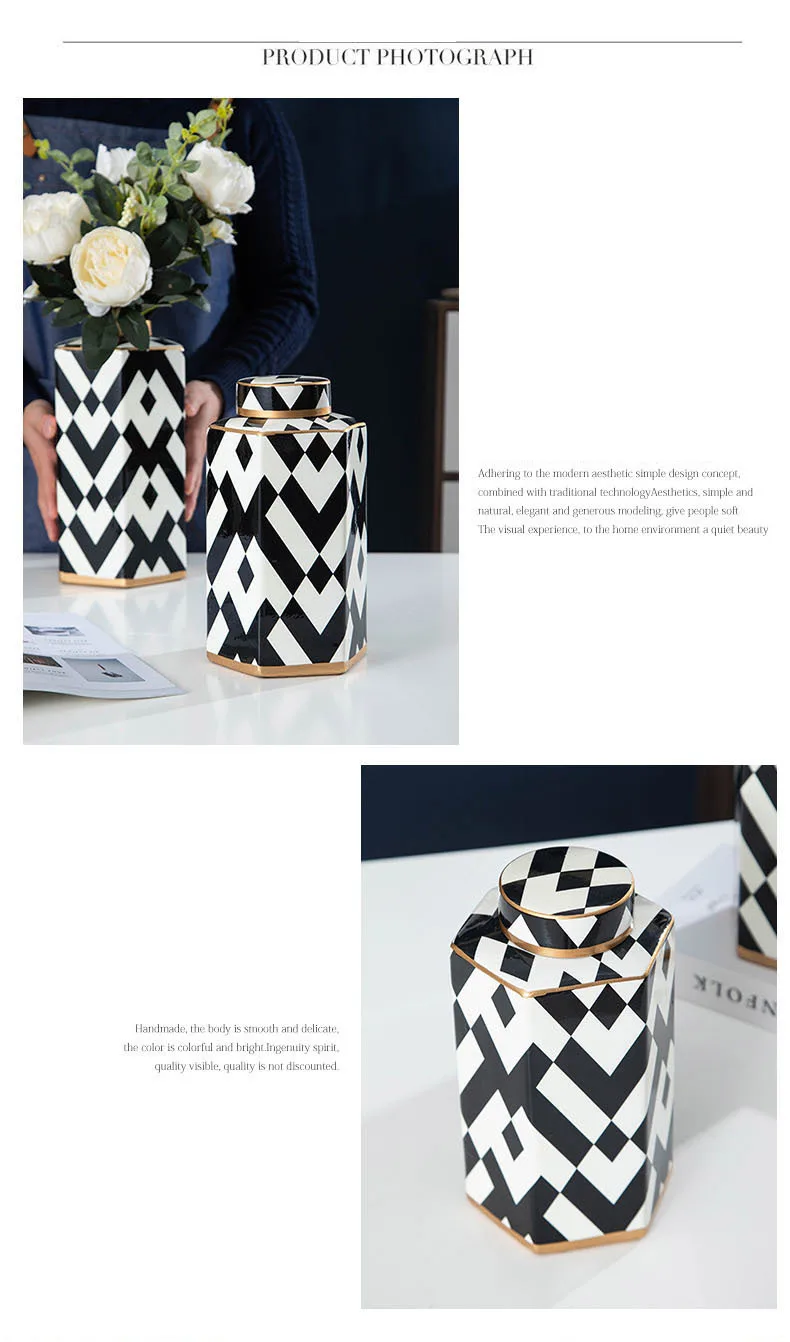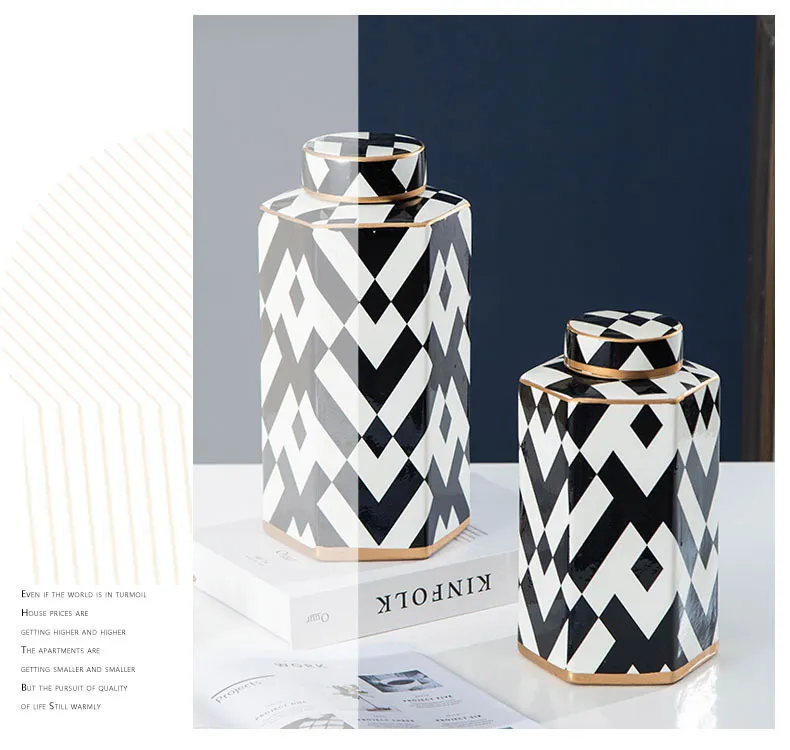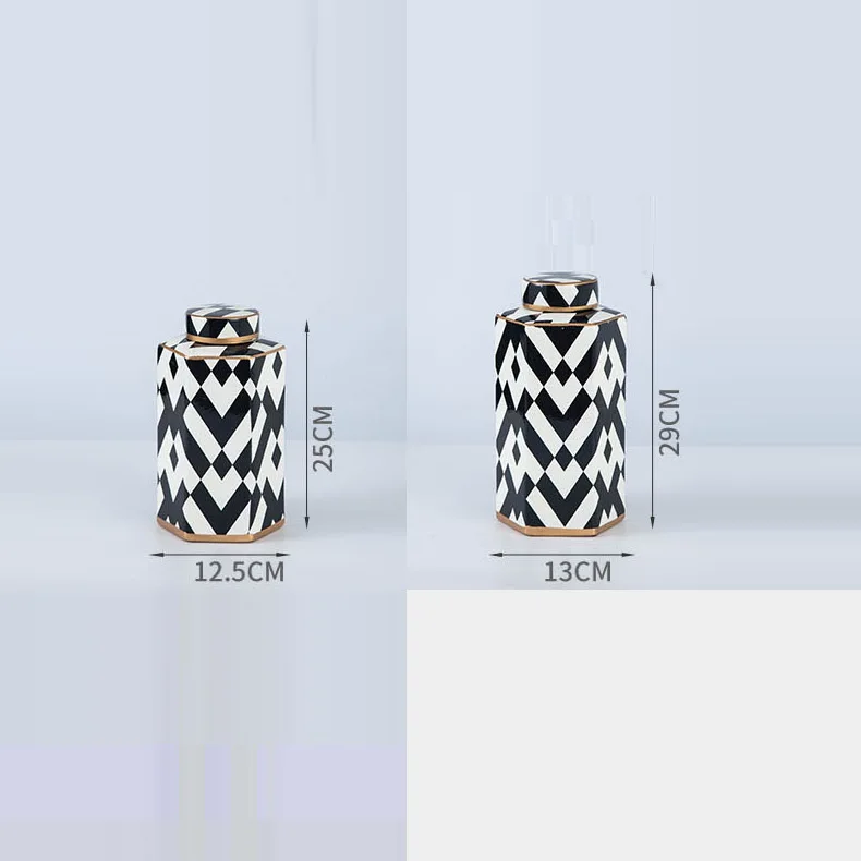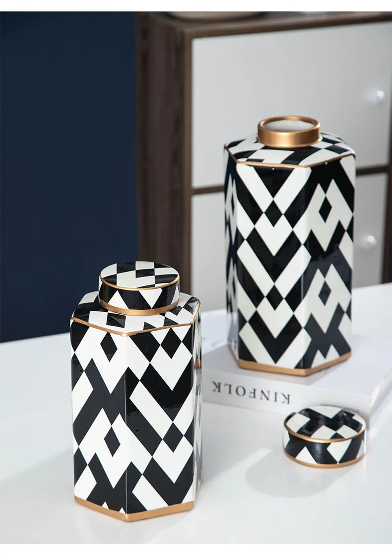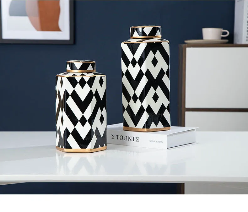 Geometric Black and White Striped Storage Jar Household Ceramic Candy Sealed Jar Vase Sundries Container Home Decoration