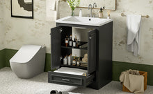 Bathroom Vanity with Ceramic Sink and Modern Freestanding Storage Cabinet, Soft-Close Doors