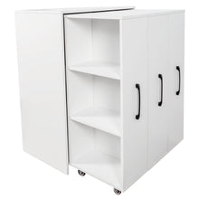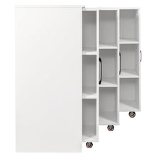 Bookcase with Three Pulled Out Doors Shelving Cabinet,3 Tier Floor Standing Bookcase,Slide Out Storage Bookcase file cabinet,Office Bedroom Living Room Hidden Storage Cabinet with Wheels