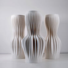 They are inspired by the lamellas and gills of fungi and are digitally designed and generated through an algorithm. The ripples vary in depth and gradient and blend together towards the top and bottom of the shapes, they emphasize the uniqueness of natural objects, where no two are alike.