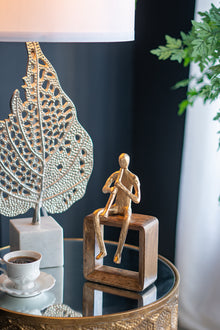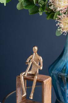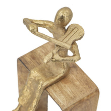Musician Figure Sculpture with Mango Wood Base Decorative Tabletop Accent