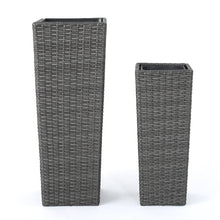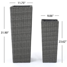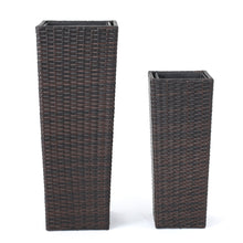 Elevate your patio, porch, or indoor corners with a set of two tall rattan-style planters designed to bring simple, timeless texture to any space. Crafted with durable woven wicker and supported by a sturdy iron frame, these flower pots offer an elegant way to showcase statement greenery, seasonal blooms, or even start a compact herb garden. With a ready-to-use design, they arrive with no assembly required—just add your favorite plants and style them together for a layered look or place them separately for balanced décor.