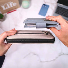 • Our Women's AirTag Compatible Wallet by VIONENTUS stores up to 10 cards. It features one transparent window for an ID or driving license and two zippered pockets for cash and coins. Its functional design makes it easy to carry in your pocket, purse, or travel pack for added convenience.