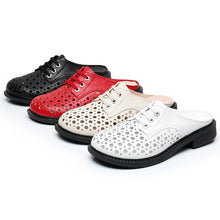 Cave shoes real leather flat heel thick sole hollowed out sandals women's slippers round toe