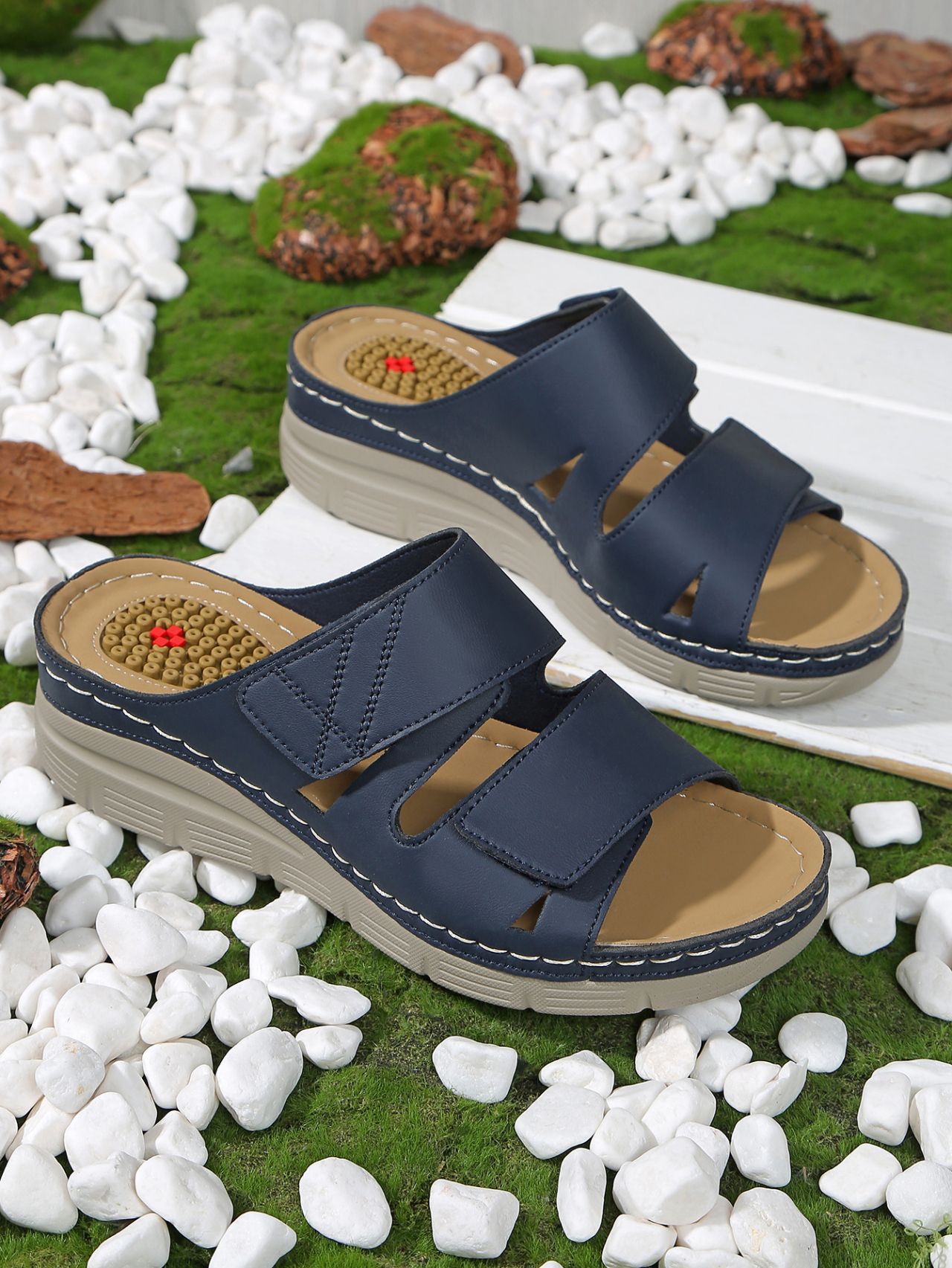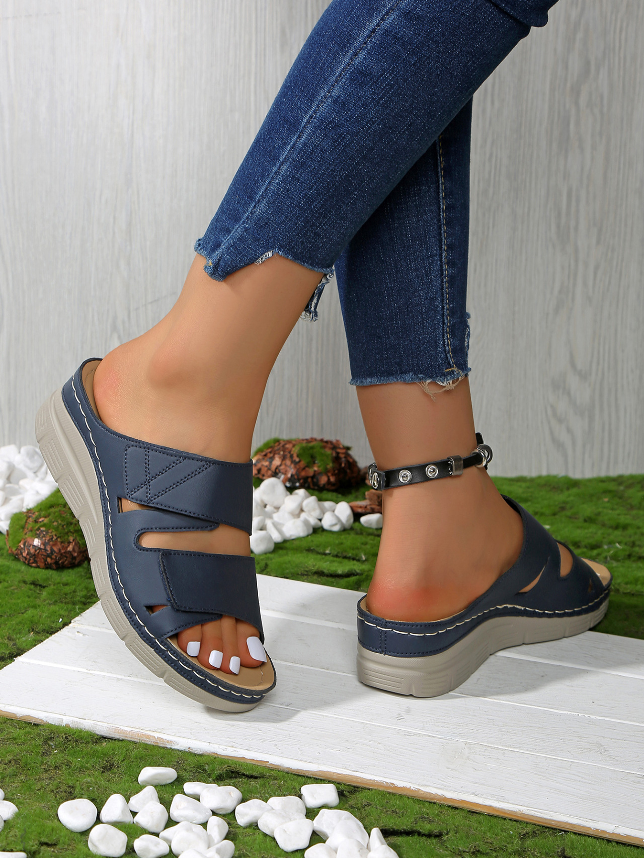 Fish Mouth Thick Bottom Slope with Beach One Line Velcro Summer Leaky Toe Beach Sandals Female