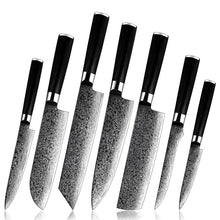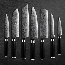 Noir Knife Set 7 Piece VG10 Stainless Damascus Steel with Black G10 Handle