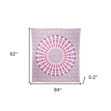 92" X 84" Pink White And Red Mandala Cotton Hanging Tapestry