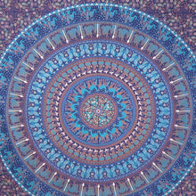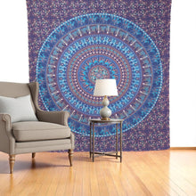 This 92-inch x 84-inch sky blue and purple mandala cotton hanging tapestry will add a beautiful decorative accent to your walls. Easily create a focal point in your room with this generously sized bohemian decor. Handmade with care, this piece brings some authenticity to your space. Instantly liven up your space with this art that brings color and dimension to your walls. Adorn your walls in style with this bed icon art. Hang on your wall to add some up to date fashion and decoration. Utilize this opportunity to create a focal point in the room with this fabulous wall decor option. 92-inch h x 84-inch w x 0.2-inch d.