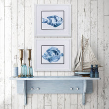 This pair of gorgeous Blue Watercolor Fish B Framed Art will be a great accent for your favorite space. Postion together or separate, these abstract images images compliment each other come double matted and framed under glass, bordered by high quality white frames. Ideal for coastal decor or anywhere you are looking for shades of blue and white, these watercolor ocean fish make a perfect way to liven up your space. 14" x 16" x 1" each. Set of 2