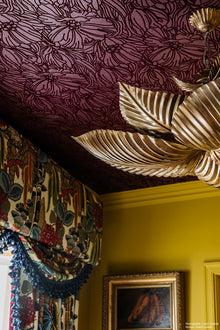 Antique gold finish on palm leaf 6 light chandelier (large) comes with 6 foot chain.
