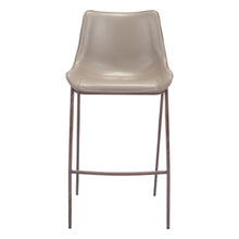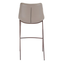 High design meets everyday casual. This handsome barstool with its slim profile pulls up perfectly to the bar. Its super comfortable curved seat is covered in brown faux leather with dramatic stitching. Matte brown Faux Wood legs are complete with protective plastic feet to keep your floors scratch-free.